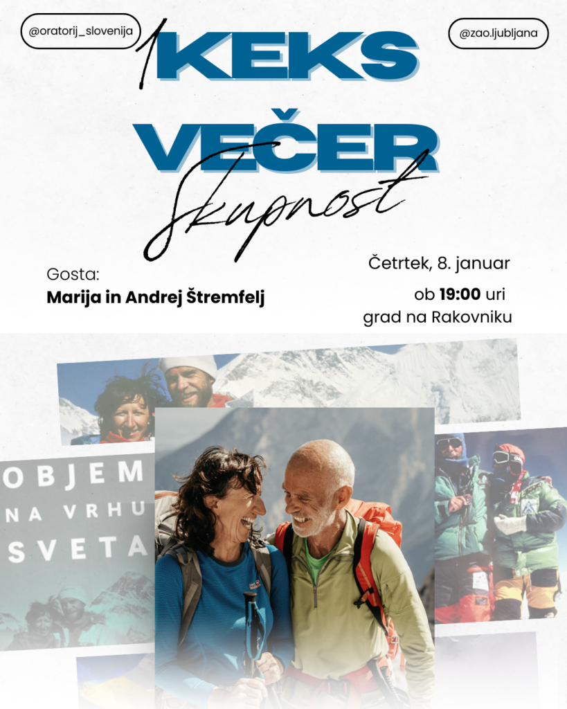 Prvi KEKS večer bo potekal že v četrtek, 8. januarja. Začeli bomo ob 19.00 s sveto mašo. Sledil bo pogovor z gostoma večera: Andrejem in Marijo Štremfelj.